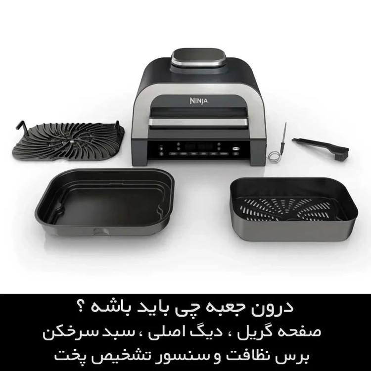 سرخ کن و گریل نینجا مدل DG551 محصولی کاربردی و مهم در هر آشپزخانه بوده تا بتوانید انواع غذاهای خوشمزه را سریع و راحت درست کنید. این سرخ کن گریل با ظرفیت XL و سیستم آشپزی هوشمند همچون دستیاری در آشپزخانه، کنارتان است تا با فشار یک دکمه به پخت کامل، سرخ و ترد شدن مواد غذایی دست پیدا می کنید. این دستگاه با توان 1760 وات از قدرت بالا در طبخ غذاها برخوردار بوده و به سرعت غذای مورد نظر شما را مهیا می سازد.