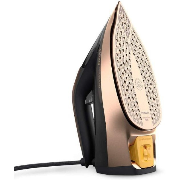 کفه استیم گلاید اتو بخار فیلیپس مدل DST8041 در صورت برخورد با دکمه و زیپ هیچ خط و خشی نمی بیند، و در برابر ضربه بسیار مقاوم است. قسمت جلویی یا نوک کفی اتو بخار فیلیپس مدل DST8041 به صورتی ساخته شده است که برای اتو کردن یقه لباس ها و بین دکمه های لباس به راحتی هرچه تمام تر حرکت می کند، و چین و چروک را از بین ببرد.