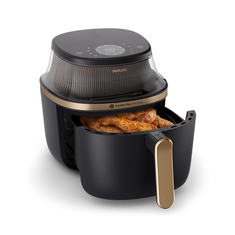 توان 1700W ظرفیت 6.2 لیتر (مناسب خانواده ۴ الی ۶نفره) نمایشگر دیجیتال و پنل لمسی مجهز به 16 برنامه پخت فناوری پخت air rapid plus قابلیت مشاهده غذا درحین پخت بدنه پلاستیک خوش ساخت با مقاومت خوب در برابر خط و خش دارای حالتهای جذاب گریل، تخمیر، یخ زدایی، تست کردن، خورش، تفت دادن، کبابی و… بهینه تر در مصرف انرژی از سریهای قدیمی فیلیپس بسکت تفلون نچسب (متصل به دسته)