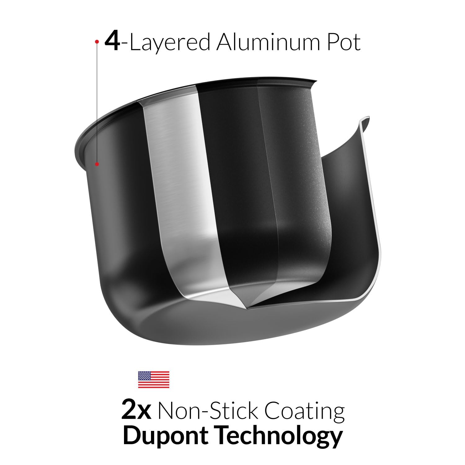 ◾کاسه پخت 6 لیتر از جنس آلومینیوم با پوشش 4 لایه نچسب و تکنولوژی Dupont
