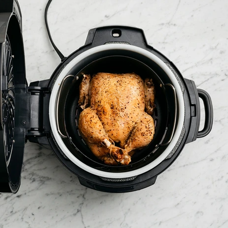 سبد 3.7 لیتری Cook & Crisp است که ظرفیت آن 1/1 کیلوگرم سیب زمینی سرخ کرده میباشد و حتی در آن، یک مرغ کامل 2 کیلوگرمی از میتوان درست کرد.