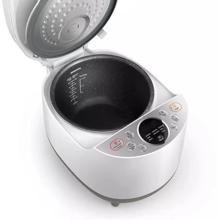 این دستگاه یک کاسه مقاوم به گنجایش پخت برای 4-5 نفر را دارد. به منظور تسلط و نظارت بیشتر بر فرایند پخت استاندارد، برند فیلیپس هلند، چندین برنامه خودکار پخت را باتوجه به شرایط گرمادهی این مولتی کوکر طراحی کرده که از طریق کنترل پنل قابل دسترسی و برنامهدهی هستند. علاوه بر این میتوانید دما و زمان را بصورت دستی انتخاب کرده و یا دستگاه را بر روی حالت پخت تاخیری قرار دهید تا در زمانبندی مقرر، پخت آغاز شود.