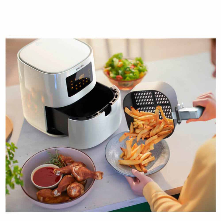 فیلیپس با تقریبا 2000 وات و ظرفیت 1.2 کیلوگرم یکی از قوی ترین سرخ کن های هوای گرم است. این سرخ کن فیلیپس از طریق نمایشگر دیجیتالی کار می کند که امکان تنظیم زمان و دما را فراهم می کند.