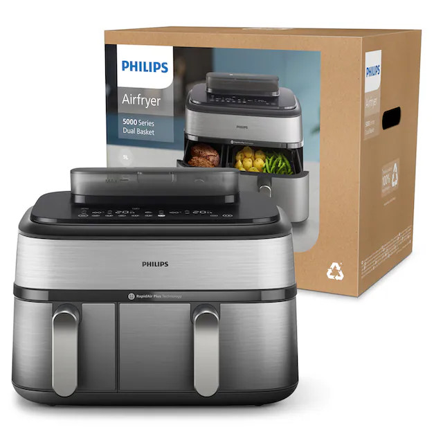 سرخ کن دوقلو فیلیپس با یک ظاهر نسبتا متفاوت نسبت به مدل های قبلی، با بدنه ای استیل عرضه شده که در جای خود بسیار جالب است. این دستگاه در اواسط 2025 روانه بازار شده و همچنان در کنار مدل na350 از همین برند، بعنوان بزرگ ترین هواپز philips شناخته میشود.
