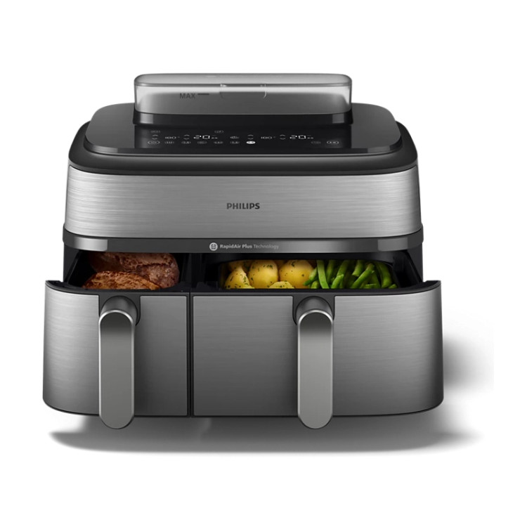 سرخ کن فیلیپس NA555 تنها مدل عرضهشده توسط فیلیپس تا سال 2025 است که در کنار پخت با هوای داغ، به لطف مخزن آب داخلی، امکان پخت بخارپز هم فراهم میکند. این نوآوری به کاربر اجازه میدهد تا بافت غذا را بین حالت خشک و لطیف تنظیم کرده و همزمان، ویتامینها و مواد مغذی بیشتری در غذا حفظ شود.