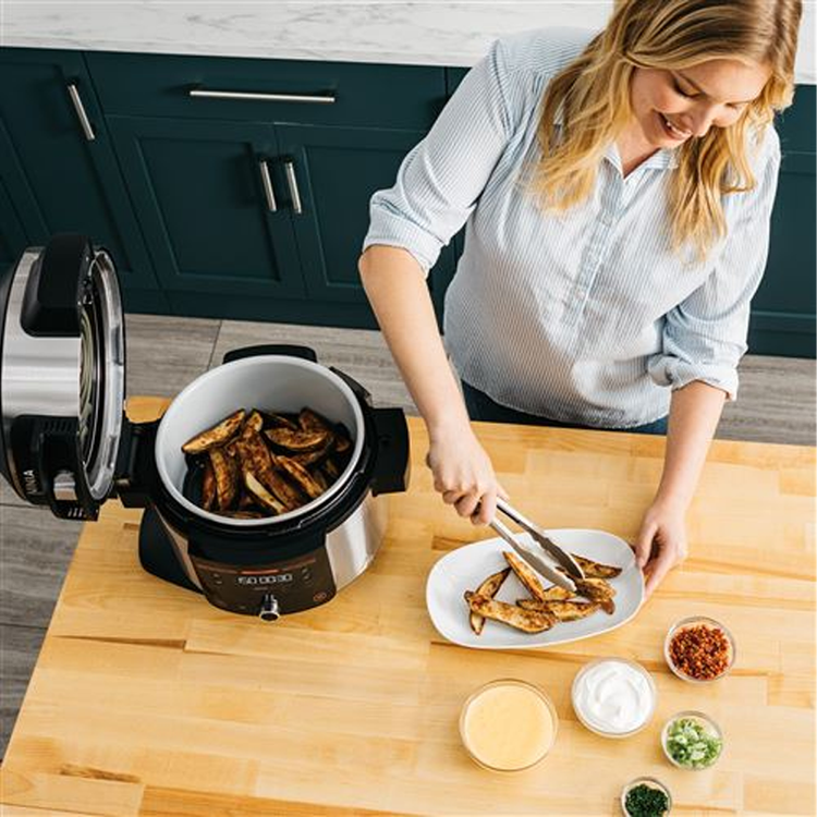 مولتی کوکر نینجا مدل OL550 محصولی چند کاره و بسیار کاربردی در آشپزخانه بوده و جایگزین خوبی برای اجاق گاز، فر و سرخ کن می باشد. این مولتی کوکر به دلیل انجام چندین کار به طور همزمان نظیر آرام پز، بخارپز، سرخ کن و ماست ساز به یکی از وسائل ضروری تبدیل شده و هر روز با آن سر و کار خواهید داشت. از همه مهم تر با توجه به سرعت بالای زندگی امروزی، امکان پخت و پز سریع و متنوع را فراهم می کند. شما می توانید با خیال آسوده یک مهمانی ترتیب دهید و تهیه سریع غذا را به مولتی کوکر نینجا بسپارید.